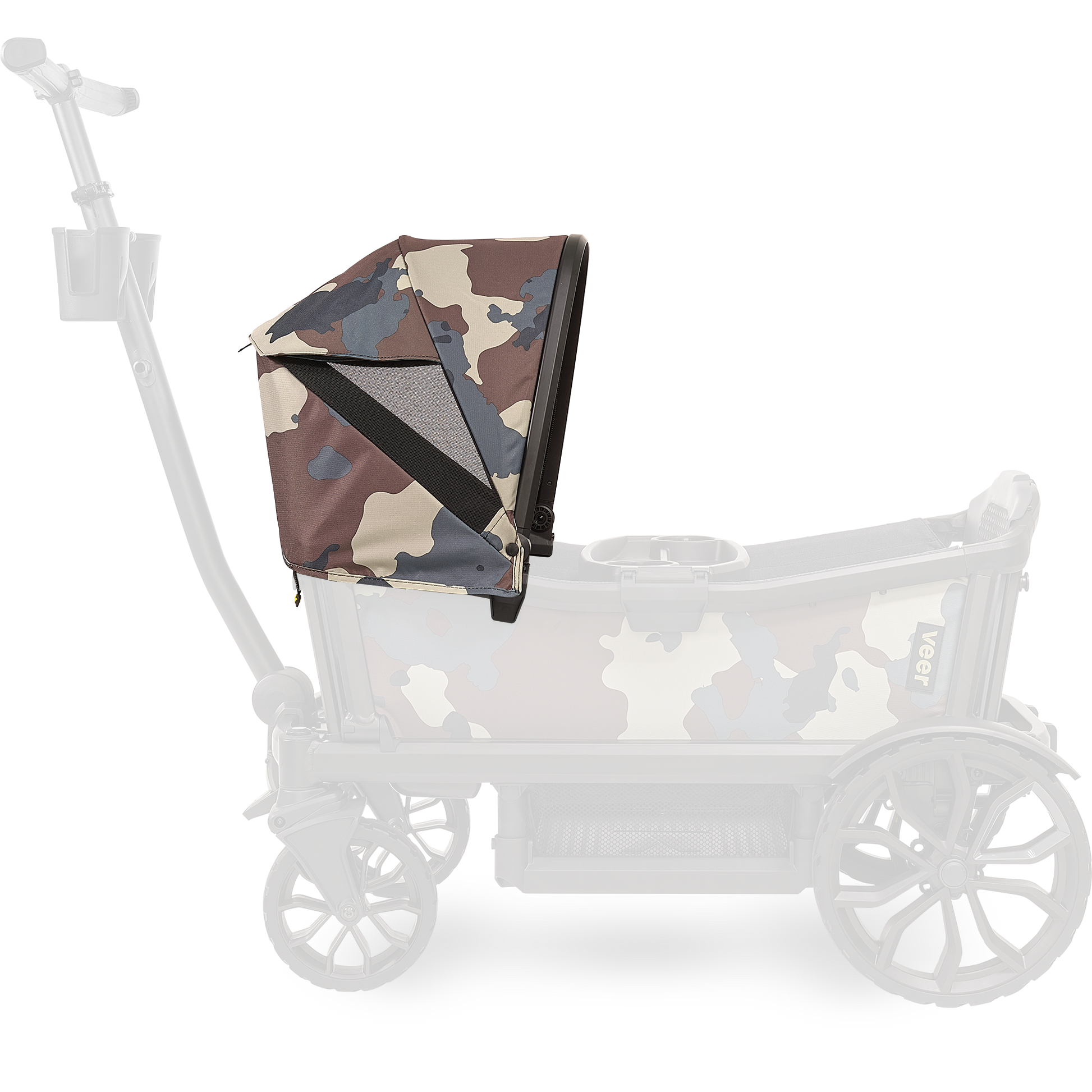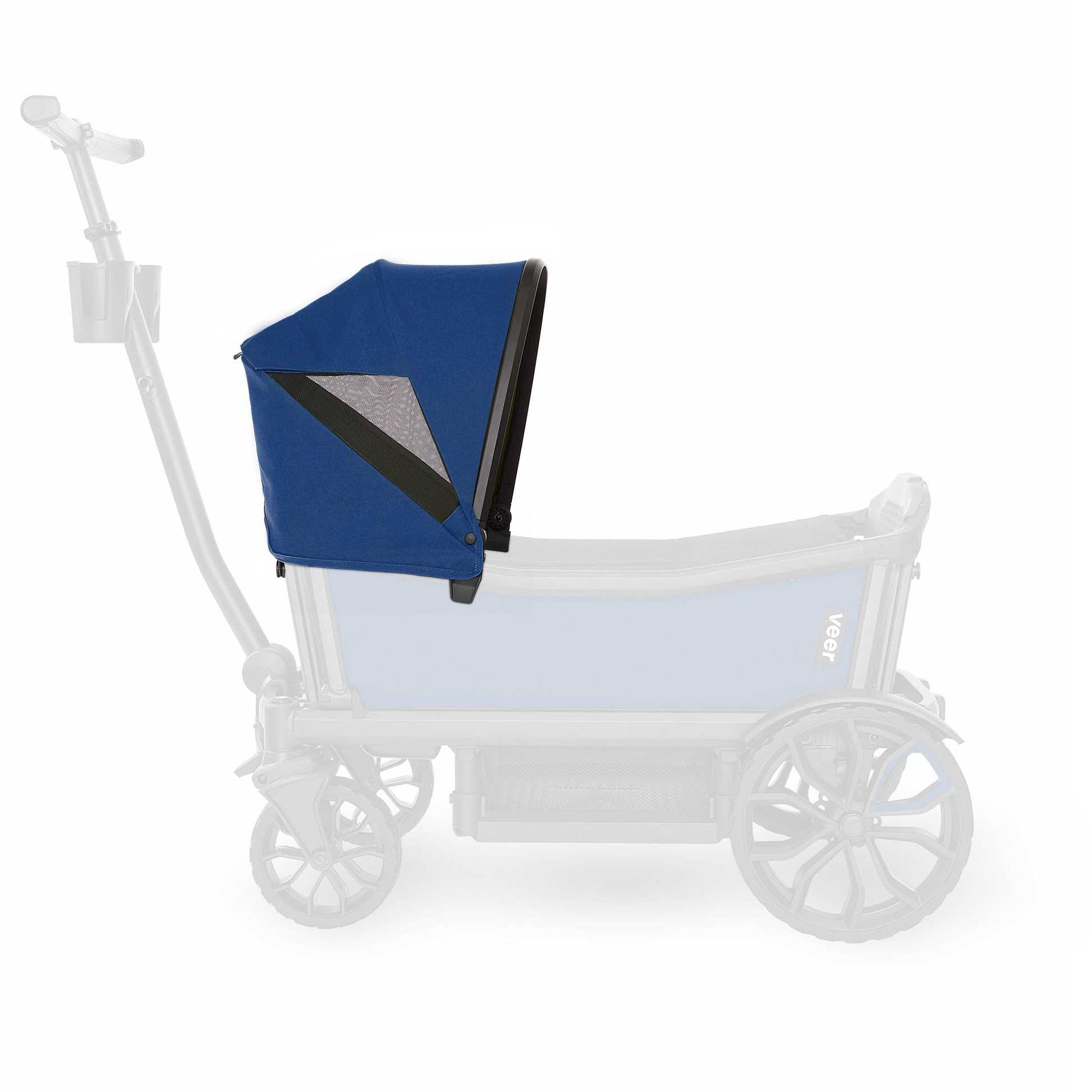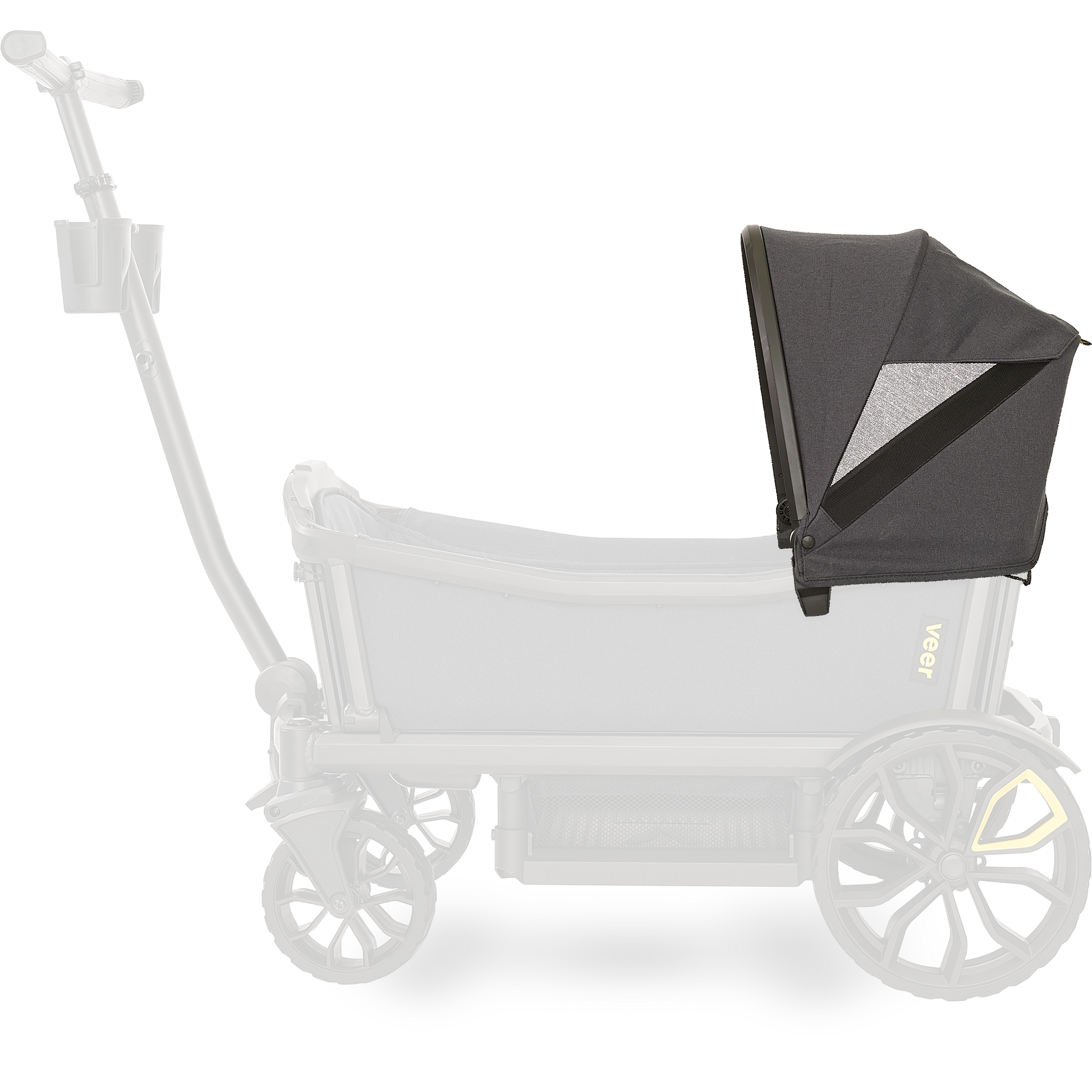 Add a Pop of color or completely coordinate with Veer’s custom color Retractable Canopy. It quickly and intuitively clips onto Cruiser’s frame and easily extends up and down. One or two can be attached, above either seat. A peak-a-boo window allows you to see your precious cargo and discreet, hidden magnets hold the window in the up position. Canopy works with Napper to create the perfect rest stop for young ones, or with Bug Shield to add insect protection.