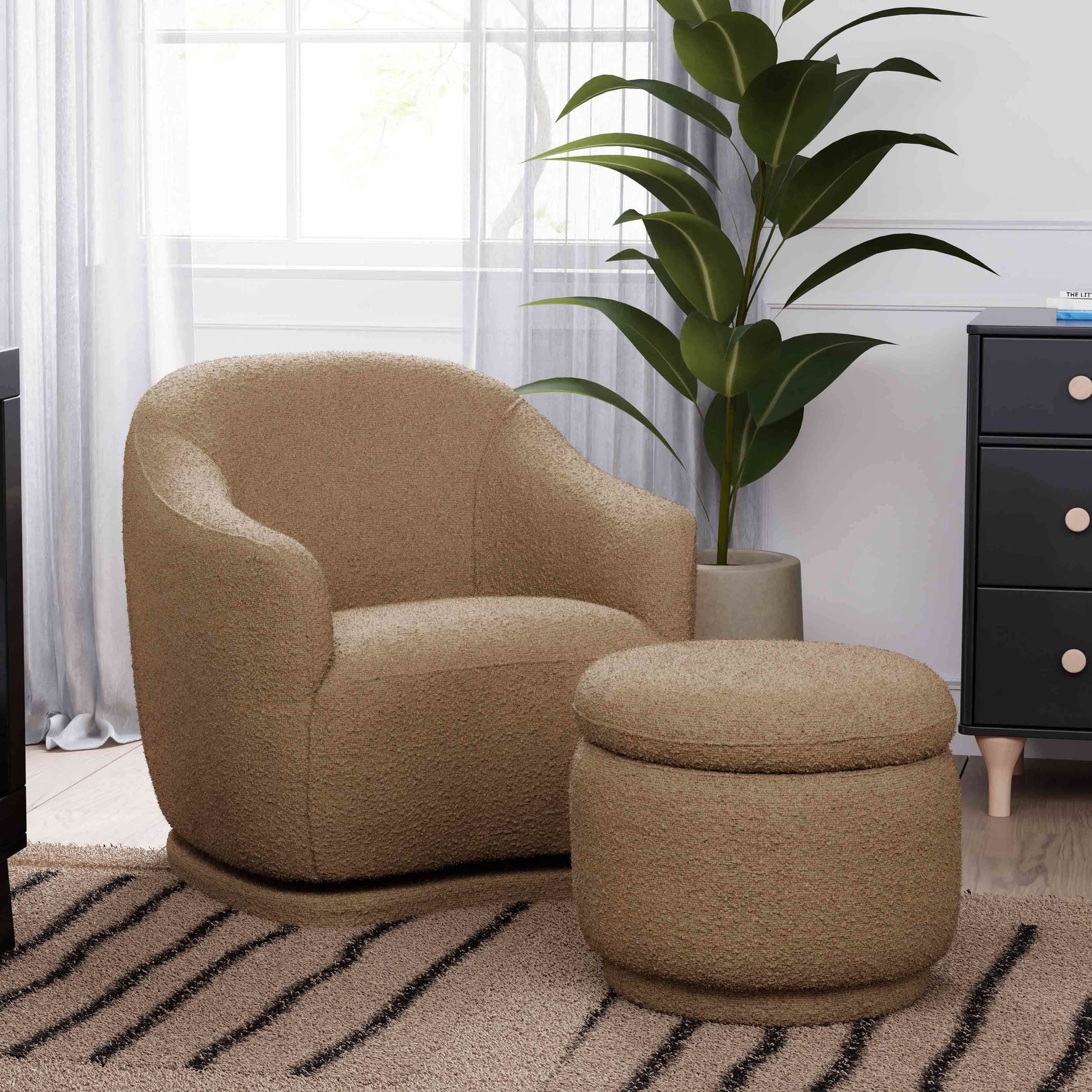 Cozy up and relax with your little one in the comfort of the Foy Glider. Its softly rounded, curved silhouette and spacious seat make for heavenly cuddling while the tonal upholstered base allows you to effortlessly glide your babe to sleep. Upholstered by hand in beautifully textured boucle fabric, the Foy Glider brings a cozy modern, contemporary feel to the nursery or your favorite reading nook.