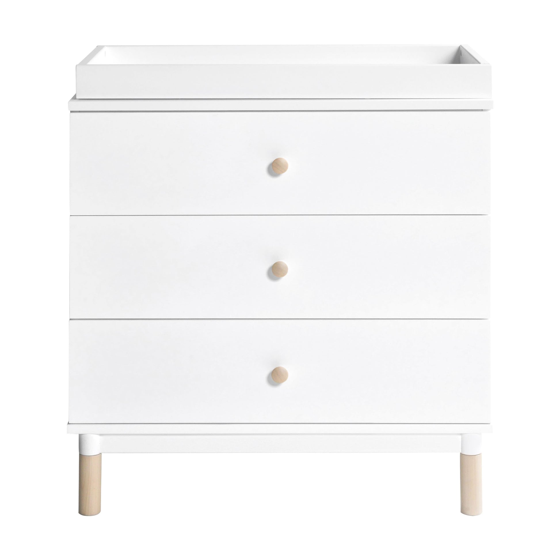 Lighten up your nursery with the playful Gelato 3-drawer Dresser. Versatile and customizable with a removable changing tray and optional additional colored feet and knobs. Three spacious, smooth-glide drawers provide ample space for a growing babe’s wardrobe. Pair it with the Gelato 4-in-1 Convertible Crib for a Scandi-design inspired nursery.