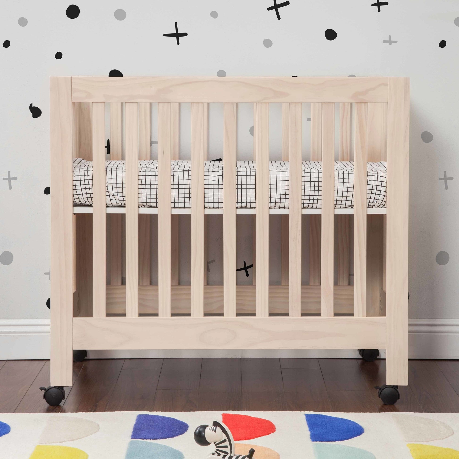 - UNIVERSAL MATTRESS FIT: The Origami is a standard mini size crib which includes a 1" waterproof mattress pad. We recommend additional support with our Pure by babyletto hypoallergenic and eco-conscious mini crib mattress (37" x 23.5").
