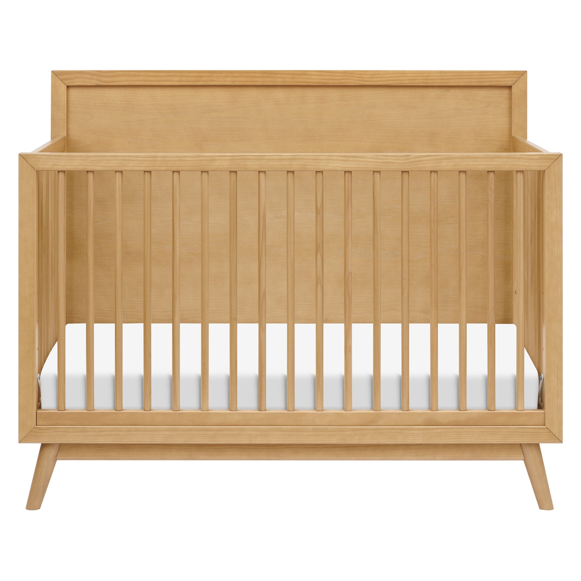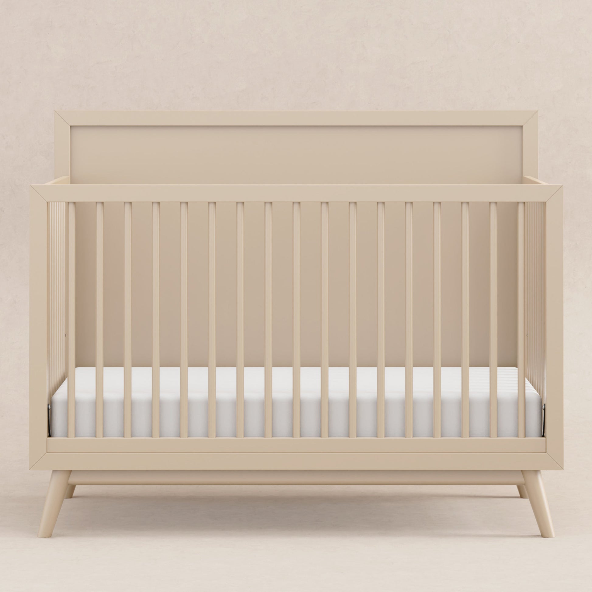 The Palma 4-in-1 Convertible Crib is the ultimate centerpiece to a stylish mid-century nursery. The Palma grows with your babe with an included toddler bed conversion kit allowing you to seamlessly convert from crib to toddler bed to daybed. And with a high headboard, it can transition into a timeless piece with an additional full-size bed conversion. Made with sustainable materials and GREENGUARD Gold certified for indoor air quality.