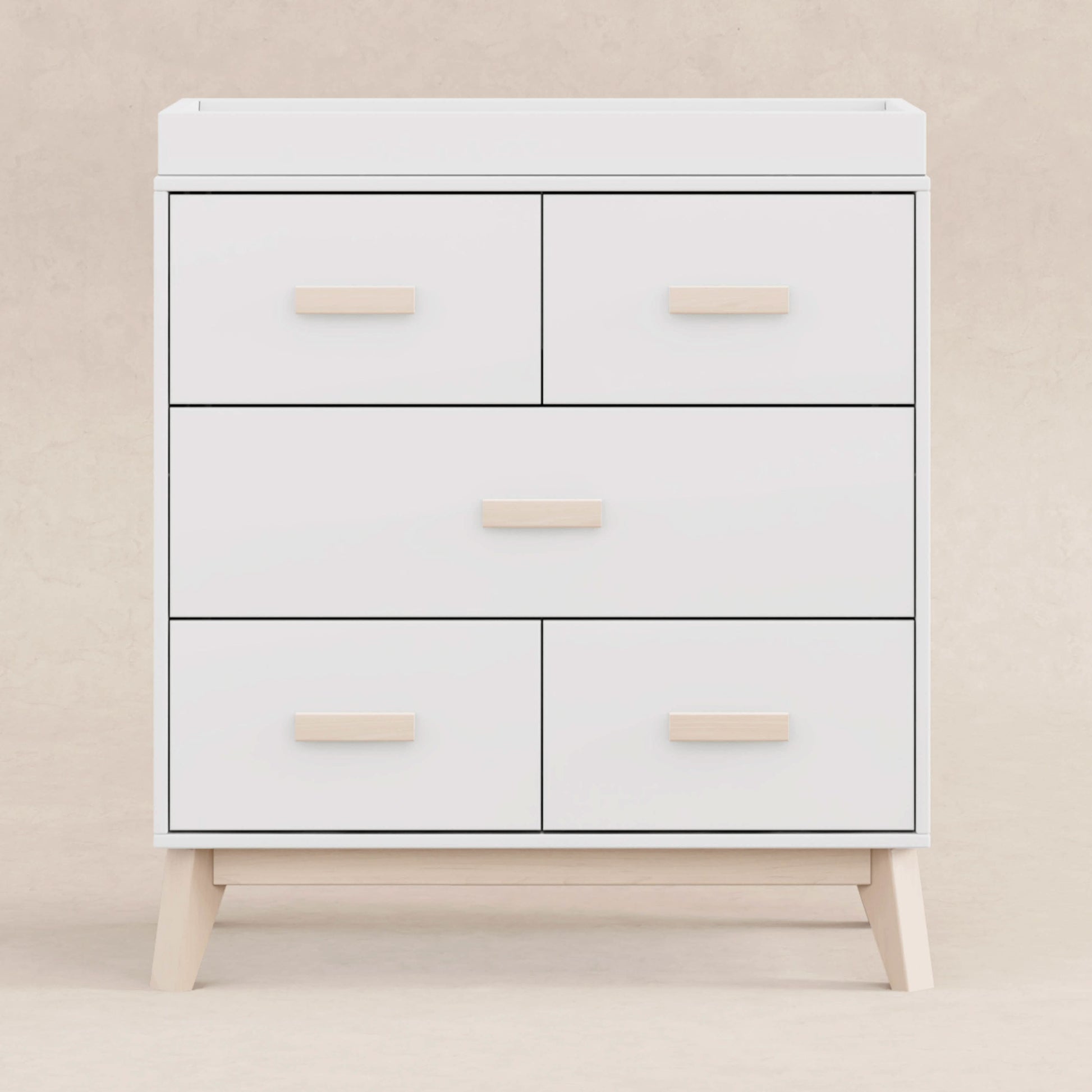- MID-CENTURY MODERN STYLE: The Scoot 3-drawer dresser brings personality and practicality together with a hint of retro styling. Pair with your Scoot 3-in-1 crib for a complete nursery look.