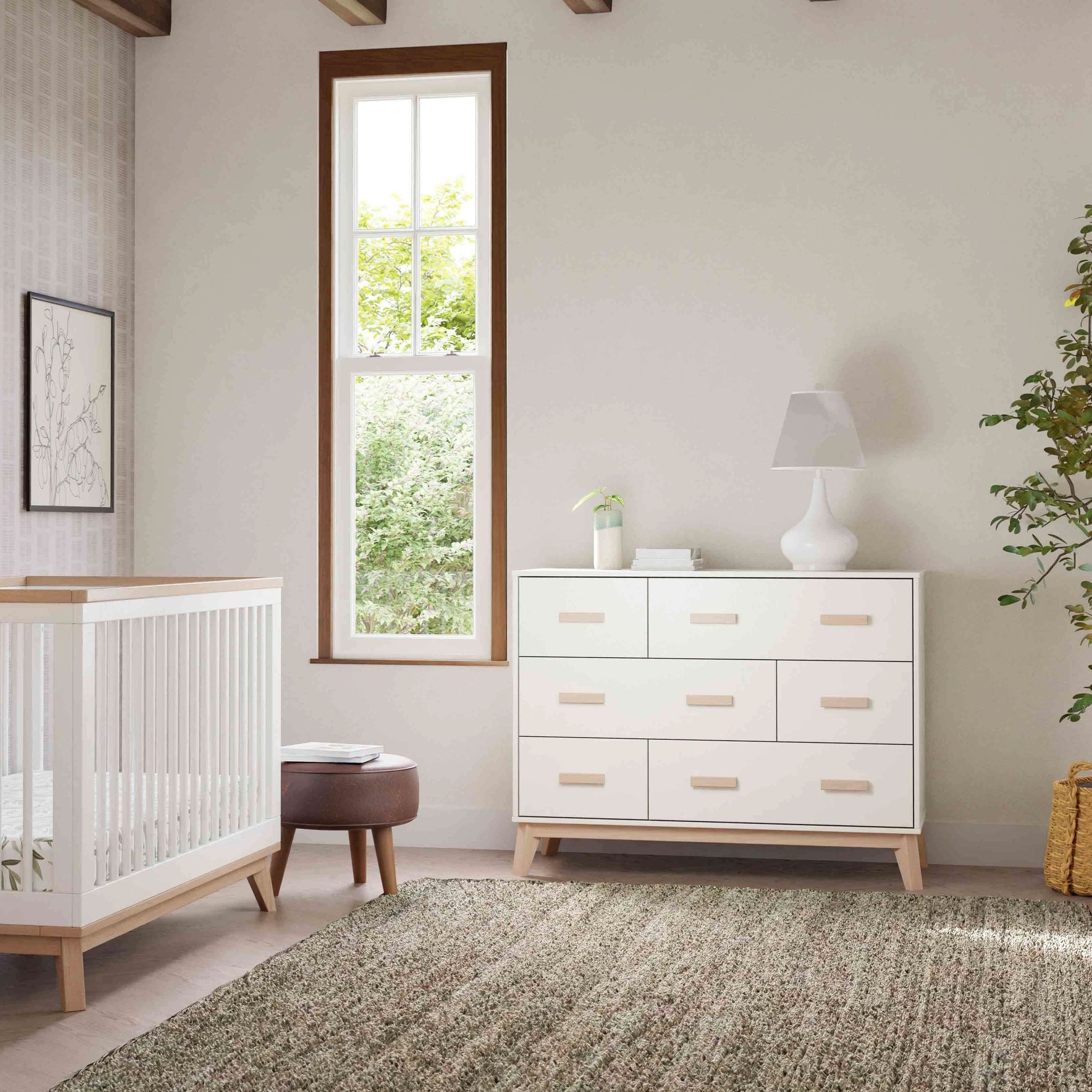 The Scoot 6-Drawer Dresser is the definition of mid-century modern style. The perfect accompaniment to your Scoot 3-in-1 Crib with matching tapered feet and two-toned or solid color detailing. With six smooth-glide drawers, this versatile unit provides a range of practical storage possibilities to suit all of your nursery needs.
