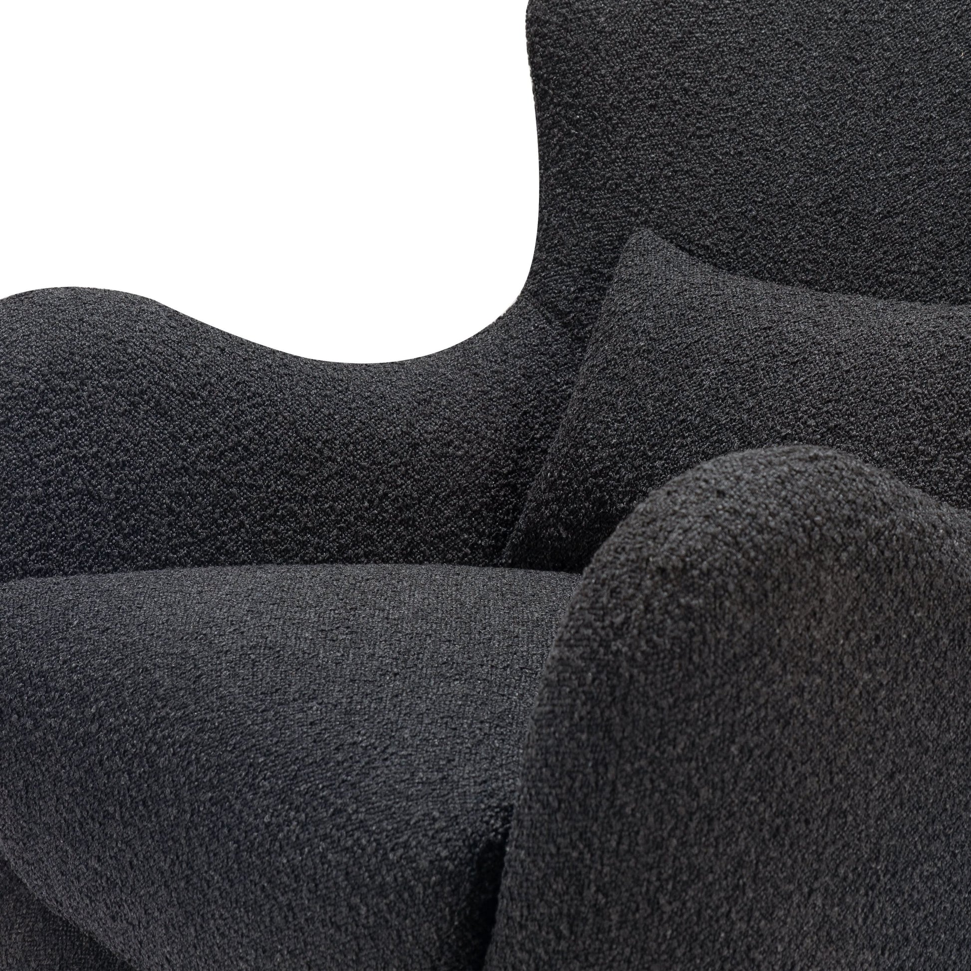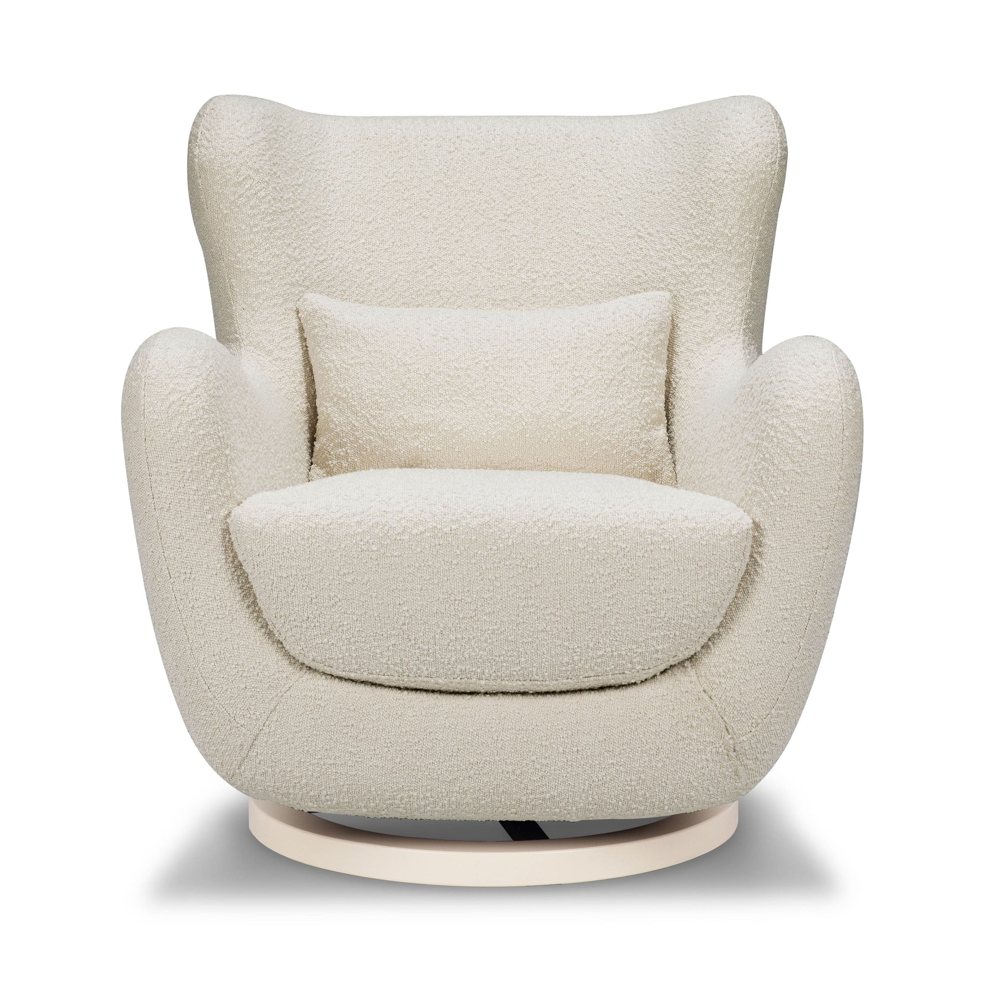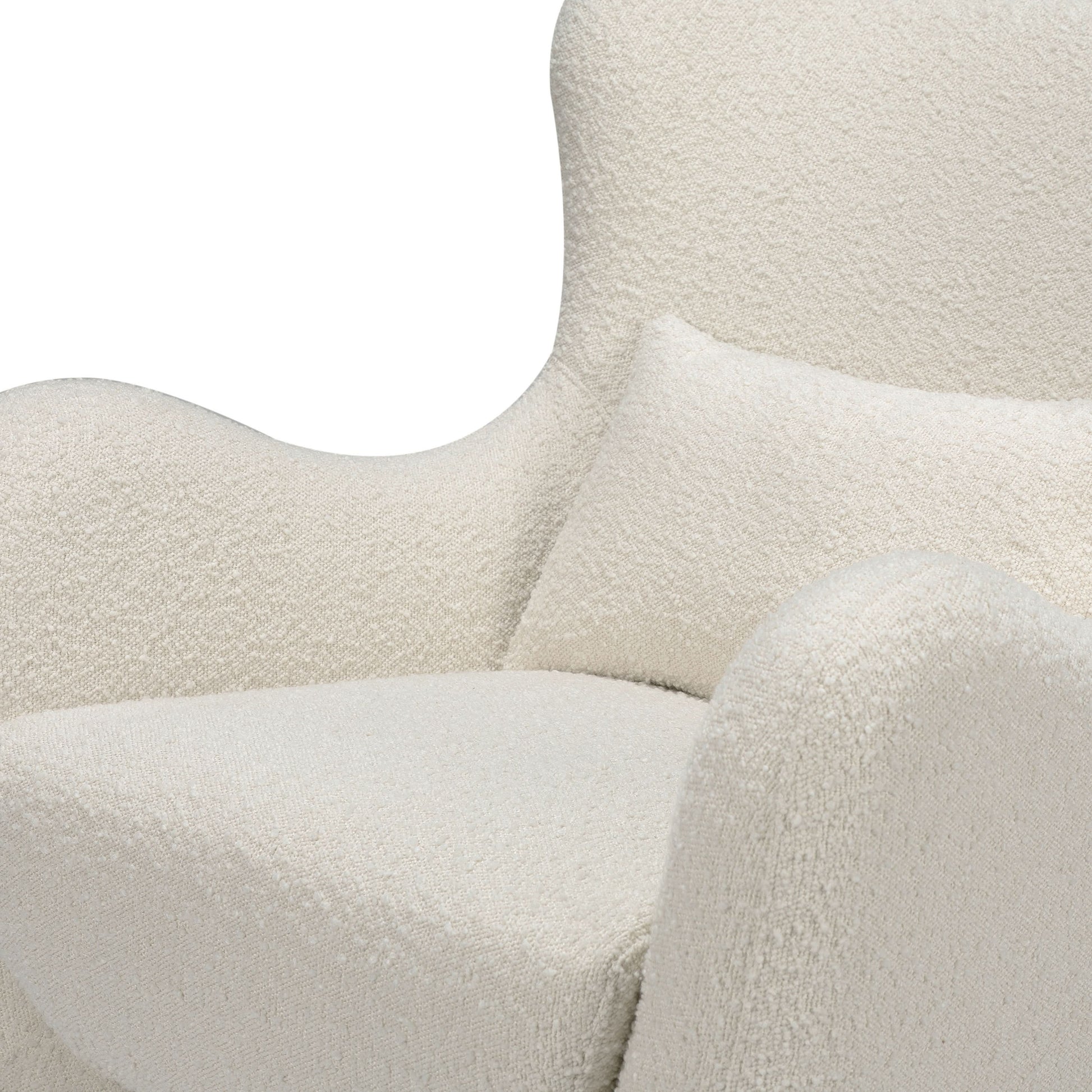 The Solstice Swivel Glider has a modern sculptural silhouette with a distinctive curved back and armrests. This glider boasts a one-of-a-kind slope design, creating a stunning visual element in any space. Crafted with precision and care, this glider is made with the finest materials. The rich boucle fabric is soft to the touch, inviting you to snuggle up with your little one. Add a touch of modern elegance to your home with the Nursery Works Solstice Swivel Glider.