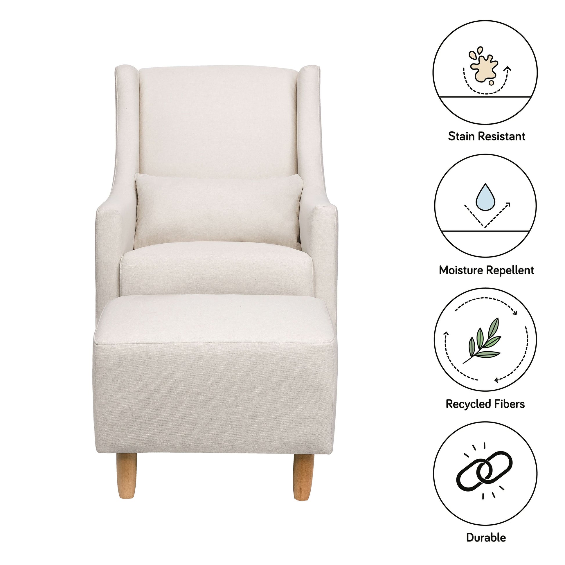 - CONTEMPORARY GLIDER WITH OTTOMAN: Put your feet up, rest and relax in the Toco wingback style glider with an included stationary ottoman that's constructed and upholstered by hand in soft and durable eco-performance fabric.