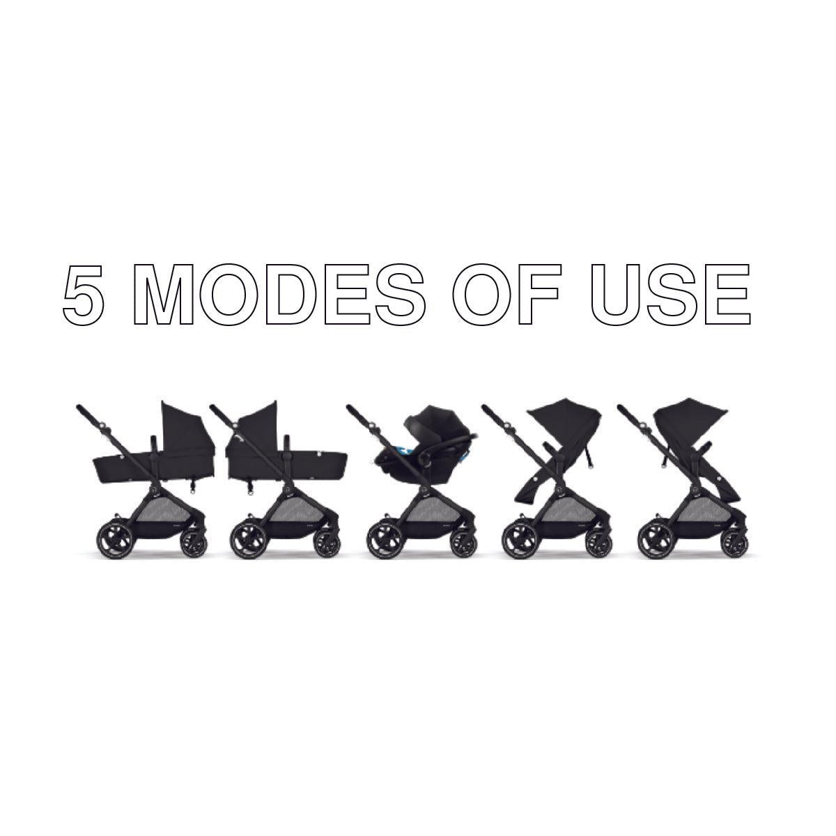 - 5 MODES OF USE: Easily adapting to your ever-changing needs, the EOS can be configured into five distinct modes: front-facing Carriage Mode, rear-facing Carriage Mode, front-facing Seat Mode, rear-facing Seat Mode, and Travel System Mode when you attach a CYBEX infant car seat.