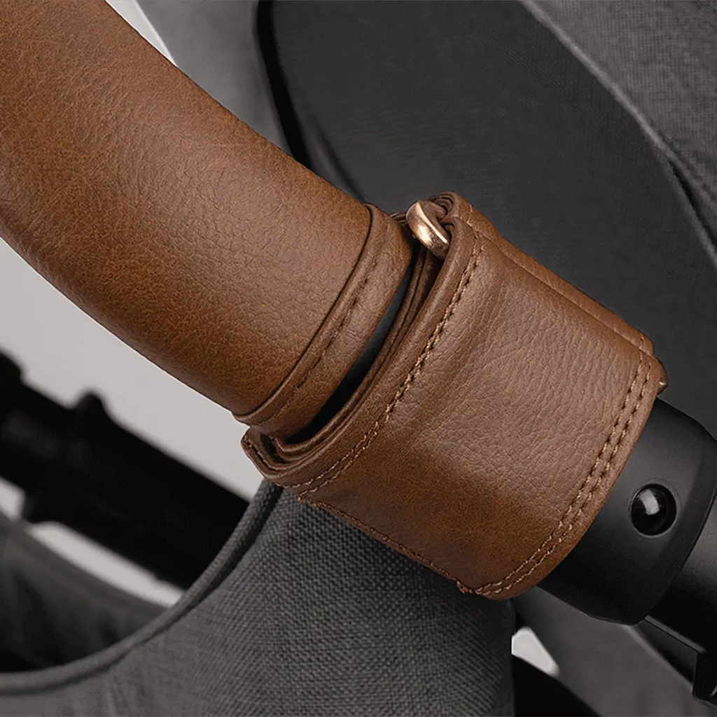 - Leatherette straps securely attach to stroller pushbar keeping it in reach