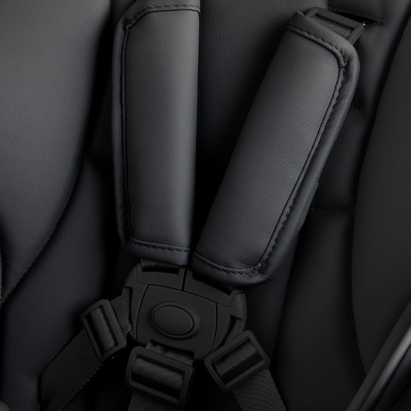 The quick and easy safety harness should be used from birth and features adjustable straps and cushioned harness pads.